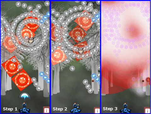 Find your center and get into a flowing rhythm of evading and exploding. If you can master the mechanics, Murasaki is insanely satisfying, mixing the mayhem and the tranquil music in a beautiful dissonant clash. Failure means death, swift and painful. Don't look at where the bullets in front of you go: plan for where the explosions will happen afterwards.